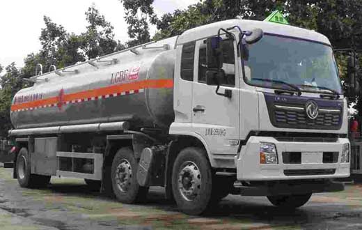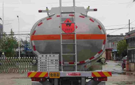 罐體有效容積:21.2立方米,危險貨物運輸車輛的類型為FL型,類項號:3;罐體尺寸(長×長軸×短軸)(mm)為:7350×2300×1600;側、后防護裝置材料材質:Q235B,側、后防護均采用螺栓連接,后防護裝置斷面尺寸為(mm):80×150,后部防護離地高度:500mm;隨底盤選裝駕駛室,選裝箱門樣式;安裝具有衛星定位功能的行駛記錄儀,排氣管前置,安裝前盤制動器和限速裝置,限速80km/h,僅采用底盤子午線輪胎;ABS型號/生產廠家:3631010-C2000/東科克諾爾商用車制動系統(十堰)有限公司;發動機型號及油耗值(L/100km)為:B6.2NS6B230(36.1),B6.2NS6B245(36.1). 該車后軸為采用空氣懸架.
