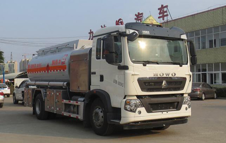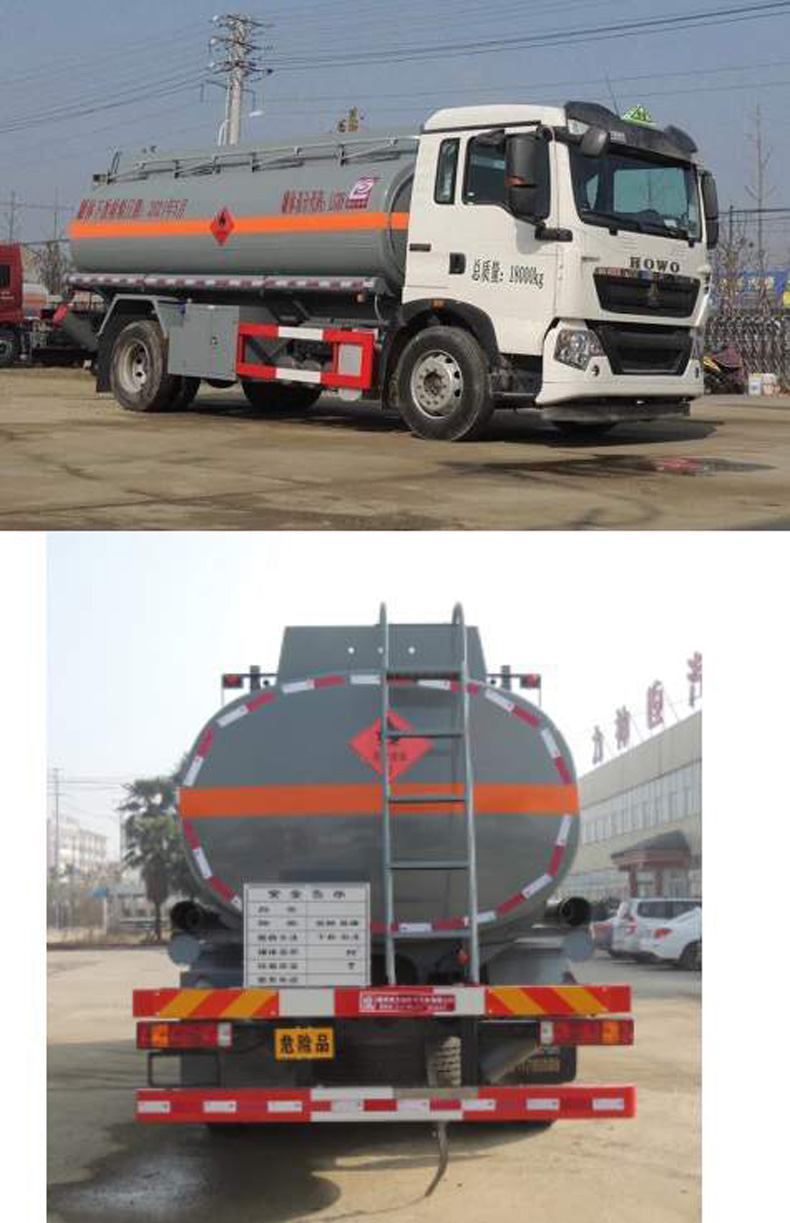罐體有效容積:12立方米,危險貨物運輸車輛類型:FL型輛,介質(zhì)類項號:3;加油裝置前置時,罐體尺寸(長×長軸×短軸)(mm)為:4700×2160×1500;當加油裝置下置時,罐體尺寸(長×長軸×短軸)(mm)為:5700×2000×1350;軸距/前懸/后懸對應關(guān)系為(mm):4700/1430/2570,5000/1430/2270;隨底盤選裝工具箱樣式,選裝擋泥板及加油倉廂門和尾部不帶工具箱;側(cè)、后防護裝置材料材質(zhì):Q235B,側(cè)、后防護均用螺栓連接,后部防護裝置斷面尺寸(寬×高)80×150(mm),后部防護離地高度:500mm;安裝具有衛(wèi)星定位功能的行駛記錄儀,排氣管前置,安裝前輪盤式制動器及限速裝置,限速80km/h,僅采用底盤子午線輪胎;ABS系統(tǒng)控制器生產(chǎn)企業(yè)/型號為威伯科(上海)管理有限公司/4460046300;選裝EBS,EBS系統(tǒng)控制器生產(chǎn)企業(yè)/型號為威伯科(上海)管理有限公司/EBS3;加油裝置型號/生產(chǎn)企業(yè):CS20D1110F/正星科技有限公司,80YHCB-60/山東博山齊魯油泵廠,YHCB-1000/5-A,YHCB-1000/5B,YHCB-300/3-B-L/永嘉三江石油機械廠. 該車后軸為采用空氣懸架.