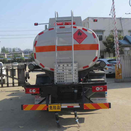 罐體有效容積:7.71立方米,危險貨物運輸車輛的類型為FL型,介質類項號:3;加油裝置下置時,罐體尺寸(長×長軸×短軸)(mm)為:4700×1750×1200;加油裝置上置時,罐體尺寸(長×長軸×短軸)(mm)為:3850×1950×1300;僅采用3800mm軸距;選裝加油裝置上置,選裝箱門樣式;側、后防護裝置材料材質:Q235B,側、后防護均采用螺栓連接,后防護裝置斷面尺寸為(mm):80×150,后部防護離地高度:470mm;安裝具有衛星定位功能的行駛記錄儀,排氣管前置,安裝前輪盤式制動器及限速裝置,限速80km/h,僅采用底盤子午線輪胎;ABS系統控制器型號/生產企業:ABS-E/威伯科汽車控制系統(中國)有限公司,ABS-VI.E/廣州瑞立科密汽車電子股份有限公司.轉向輪安裝爆胎應急防護裝置.