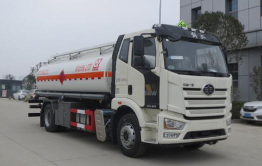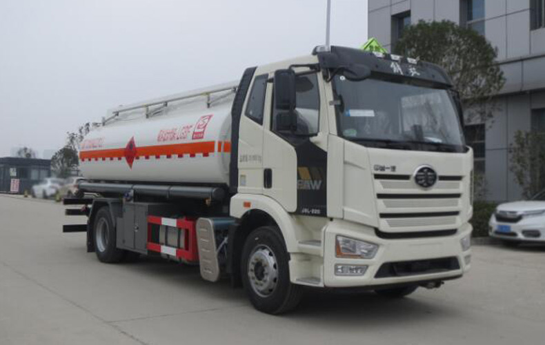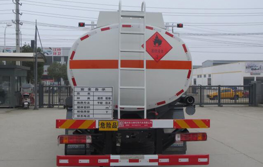 罐體有效容積:15.0立方米,危險貨物運輸車輛的類型:FL型車輛,類項號:3;罐體尺寸(長×長軸×短軸)(mm)為:5700×2160×1500;僅采用4700(mm)軸距;選裝炮筒樣式;側、后防護裝置材料材質:Q235B,側、后防護均用螺栓連接,后部防護裝置斷面尺寸(寬×高)80×150(mm),后部防護離地高度:480mm;安裝具有衛星定位功能的行駛記錄儀,僅采用子午線輪胎,前輪裝配盤式制動器,排氣消聲器及排氣管前置;安裝限速裝置,限速79km/h;安裝EBS,型號:EBS3,生產廠家:威伯科汽車控制系統(中國)有限公司;發動機對應油耗值(L/100km)為:CA4DK1-22E61(22.096),CA4DK1-18E61(22.096).該車后軸采用空氣懸架;轉向輪安裝爆胎應急防護裝置;選裝直接供電式ETC車載裝置
