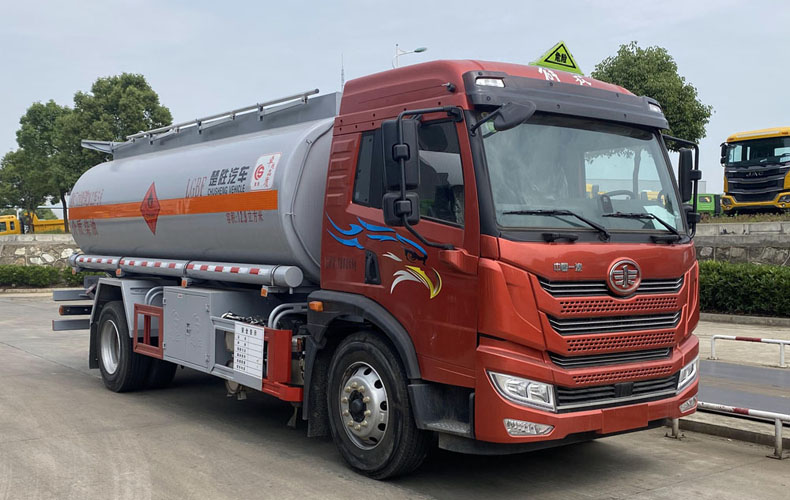 該車適用于危險品運輸,運送危險貨物車輛類型為:FL型,運輸介質zui大密度830千克/立方米.罐體總容量:12.9立方米,罐體有效容積:12.28立方米,罐體外形尺寸(長×寬×高)(mm):5700×2000×1400.僅采用4700mm軸距底盤.側、后防護材料均為Q235,螺栓連接,后防護截面尺寸(mm)60×120,下邊緣離地高490mm.隨底盤選裝駕駛室.僅選用排氣管前置,限速裝置(限速80km/h),前輪pan式制動及子午線輪胎的底盤,轉向輪安裝輪胎bao胎應急防護裝置,后軸裝備空氣懸架,安裝帶有衛星定位功能的行駛記錄儀.EBS型號/生產廠家:EBS5/克諾爾制動系統(大連)有限公司.發動機/油耗值(L/100km)對應關系為:CA6DLD-22E6/26.53.發動機zui大凈功率為:CA6DLD-22E6(162kw).選裝直接供電式ETC車載裝置.后軸選裝弧形擋泥板。選裝電瓶,尿素罐,儲氣筒安裝位置,選裝后處理位置樣式。選裝后部企業標識位置.