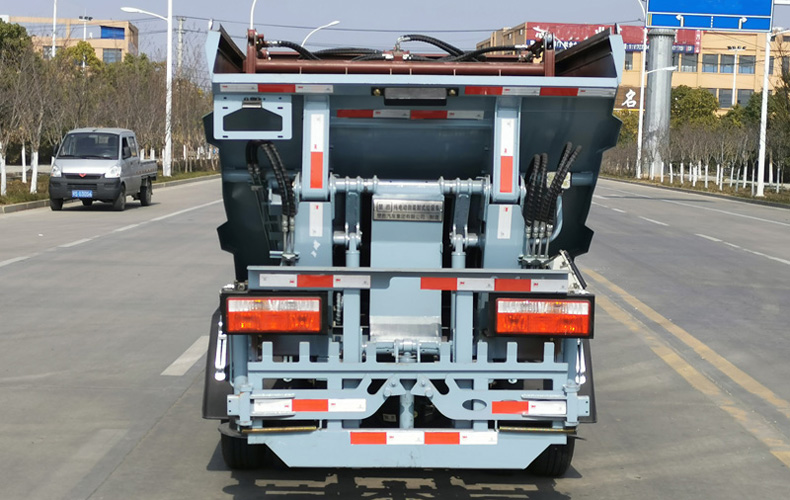 采用刮板滑板壓縮裝置,可對垃圾進(jìn)行壓縮,提高垃圾裝載能力,降低運(yùn)營成本。