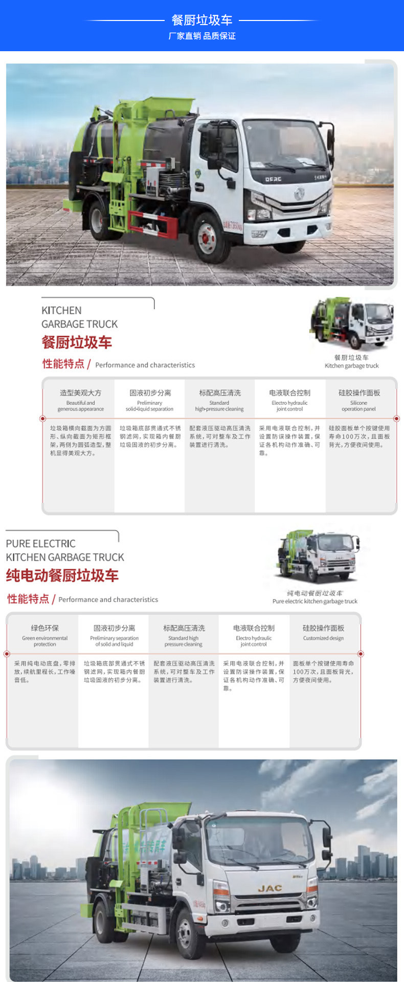 垃圾車價(jià)格_純電動(dòng)垃圾車_東風(fēng)小型純電動(dòng)餐廚垃圾車★13908669111★產(chǎn)品名稱CSC5080TCAJH6BEV型純電動(dòng)餐廚垃圾車,采用東風(fēng)EQ1080TTZEVJ1底盤改裝而成,該車用于餐廚垃圾收集清運(yùn),主要專用裝置為箱體、上料提升機(jī)構(gòu)等組成.標(biāo)配固液初步分離,垃圾箱底部貫通式不銹鋼濾網(wǎng),實(shí)現(xiàn)箱內(nèi)餐廚垃圾固液的初步分離。標(biāo)配高壓清洗配套液壓驅(qū)動(dòng)高壓清洗系統(tǒng),可對(duì)整車及工作裝置進(jìn)行清洗。更多垃圾車盡在:www.siski.cn