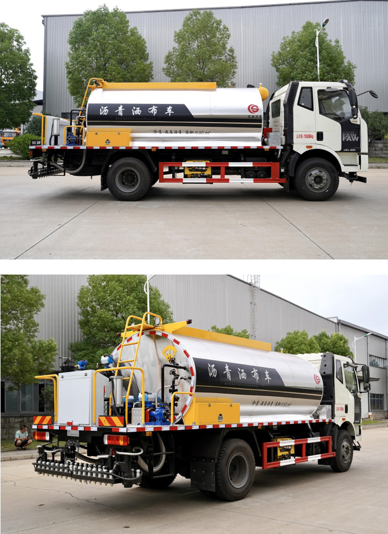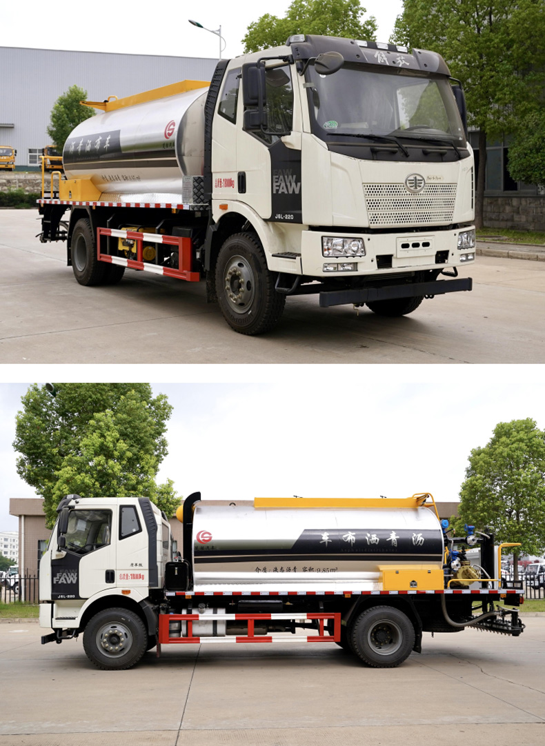 瀝青灑布車_解放J63智能型灑布車(10-12立方)★13908669111★楚勝牌CSC5180GLQCA6瀝青灑布車,采用解放CA1180P62KL2A1E6Z底盤改裝而成,罐體材質為優質碳鋼板,巖板保溫層,罐體表面不銹鋼材質,該灑布車由汽車底盤、瀝青 罐體、瀝青泵送及噴灑系統、液壓系統、燃燒及導熱油加熱系統、控制系統、氣動系統、操作平臺構成。該車操作簡便,用于修筑高等級公路瀝青路面底層的透層油、防水層、粘結層的灑布。更多瀝青灑布車盡在:www.siski.cn