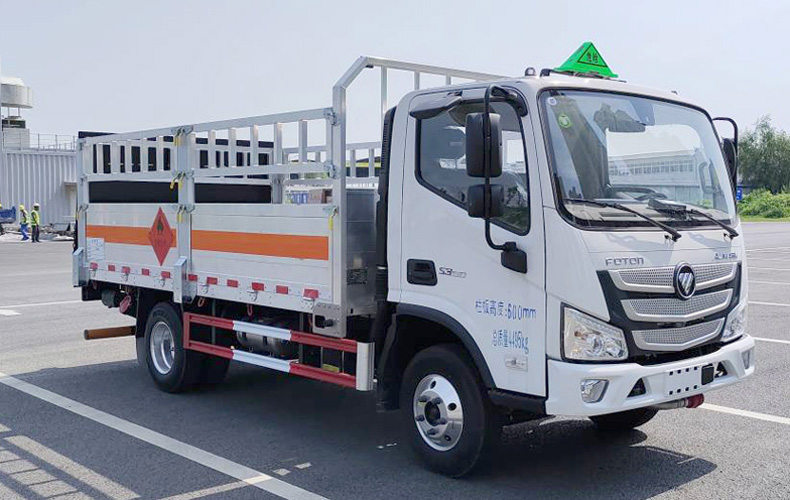 該車適用于運輸危險品,用于運輸具有獨立容器(瓶)包裝的物品,運送危險類項號:2.1,2.2.運輸易燃氣體時掛2.1類警示牌,運輸非易燃無毒氣體時掛2.2類警示牌.側(cè)、后防護材料均為Q235,螺栓連接,后防護截面尺寸(mm)φ100,下邊緣離地高450mm.液壓尾板收起狀態(tài)水平長度為280mm,尾板質(zhì)量為350kg.選裝后部無尾板時,側(cè)、后防護材料均為Q235,螺栓連接,截面尺寸(mm)100×50,下邊緣離地高450mm.僅選用軸距3360mm.僅選用排氣管前置、限速裝置(限速80km/h)、前輪盤式制動及子午線輪胎的底盤,轉(zhuǎn)向輪裝備輪胎爆胎應急防護裝置.安裝帶有衛(wèi)星定位功能的行駛記錄儀.ABS型號/生產(chǎn)廠家:ABS-E/威伯科汽車控制系統(tǒng)(中國)有限公司,ABS-VI·E/廣州瑞立科密汽車電子股份有限公司,YF8/武漢元豐汽車電控系統(tǒng)有限公司.發(fā)動機/油耗值(L/100Km)對應關系為: D25TCIF1/11.16,F2.5NS6B131/11.27.整備質(zhì)量不含備胎,含滅火器及隨車工具,貨箱重量300kg,底板鋁合金,厚度30mm,邊板材質(zhì)鋁合金,厚度40mm.該車型可選裝直接供電式ETC車載裝置.隨底盤選裝排半駕駛室,選裝前圍及前部燈具.廂體選裝無柵欄,選裝柵欄樣式,選裝貨箱箱板結(jié)構(gòu).選裝尾板樣式.隨底盤選裝前臉標識.