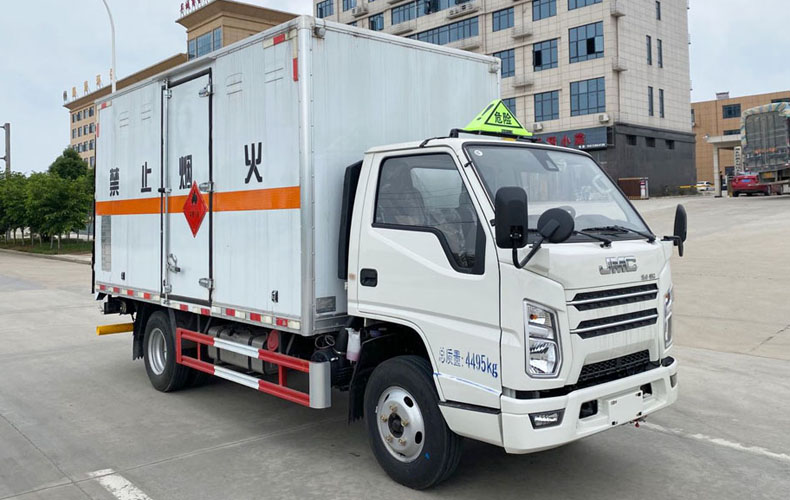 1、該車適用于運輸危險品,運輸具有獨立容器(瓶)包裝的物品。運送危險物品類項號:2.1,2.2。廂體頂部封閉不可開啟。2、側、后防護材料為Q235,螺栓連接,后防護截面尺寸(mm)φ100,下邊緣離地高400mm。選裝后部無尾板,選裝后部無尾板時后防護材料為Q235,焊接,截面尺寸(mm)100×50,下邊緣離地高400mm。3、隨底盤選裝駕駛室。僅選用排氣管前置、限速裝置(限速80km/h)、前輪盤式制動及子午線輪胎的底盤,轉向輪安裝爆胎應急防護裝置。安裝帶有衛星定位功能的行駛記錄儀。ABS型號/生產廠家:APG3550500A/浙江亞太機電股份有限公司。發動機與油耗值(L/100Km)對應關系為: JX493ZLQ6D/10.75。4、廂體側面選裝開門型式及位置,選裝不帶側開門,選裝瓦楞板結構;廂體側面板選裝開百葉窗。選裝ETC。尾板收起狀態水平長度為280mm,尾板質量為350kg。隨底盤選裝電瓶、尿素罐、儲氣筒、油箱左右安裝位置。整備質量包括備胎、滅火器、隨車工具、停車楔;貨廂重量:復合板結構1215kg,瓦楞板結構1050kg;材質/厚度:復合板結構廂體:底板材質為Q235,厚度3mm,側板為外冷扎鋼板+中間阻燃泡沫+內純鋁板,厚度42mm;瓦楞板結構廂體:底板材質為Q235,厚度3mm,側板為冷扎鋼板,厚度1.2mm。