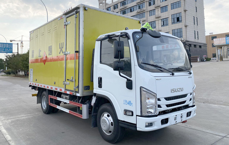 1、該車適用于運輸危險品.該車用于運輸具有獨立容器(瓶)包裝的物品.危險貨物類項號:2.1,2.2;運輸易燃氣體時掛2.1類警示牌,運輸非易燃無毒氣體時掛2.2類警示牌.廂體頂部封閉,不可開啟.2、側、后防護材料為Q235,螺栓連接,后防護截面尺寸(mm)Φ100,下邊緣離地高460mm.選裝后部無尾板時,后防護材料為Q235,螺栓連接,截面尺寸(mm)100×50,下邊緣離地高460mm.尾板收起狀態水平長度為280mm,尾板質量為350kg.3、整備質量含滅火器及隨車工具;貨廂重量為1120kg;材質/厚度:復合板結構廂體:底板材質為Q235,厚度3mm,側板為外Q235+中間阻燃泡沫+內純鋁板,厚度42mm;瓦楞板結構廂體:底板材質為Q235,厚度3mm,側板為Q235,厚度1.5mm.4、僅選用排氣管前置、限速裝置(限速80km/h)、前輪盤式制動及子午線輪胎的底盤,轉向輪安裝輪胎爆胎應急防護裝置.安裝帶有衛星定位功能的行駛記錄儀.ABS系統型號/生產廠家:CM4XL-4S/4M/廣州瑞立科密汽車電子股份有限公司.發動機/油耗值(L/100km)對應關系為: JE493ZLQ6K/11.02.該車可選裝直接供電式ETC車載裝置.隨底盤選裝不帶后風窗玻璃,選裝不帶前霧燈,選裝前霧燈,選裝不帶車輪裝飾罩.選裝鋁合金輪輞.廂體側面選裝開門型式及位置,選裝不帶側開門,選裝瓦楞板結構;廂體前后及側面選裝開百葉窗,選裝尾板樣式,選裝無后尾板.選裝排半駕駛室.隨底盤選裝儲氣筒,尿素罐,電瓶安裝位置.