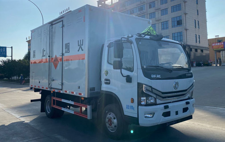 1、該車適用于運輸危險品,運輸具有獨立容器(瓶)包裝的物品,危險貨物運輸車輛類型:EX/Ⅲ,危險貨物類項號:1.1B,1.1G,1.3C,1.1D,1.2D,1.1C,1.4G。廂體頂部封閉,不可開啟。2、側(cè)、后防護材料為Q235,側(cè)防護螺栓連接,后防護焊接,截面尺寸(mm)100×50,下邊緣離地高450mm。3、隨底盤選裝駕駛室;僅選用排氣管前置、限速裝置(限速80km/h)、前輪盤式制動及子午線輪胎的底盤,轉(zhuǎn)向輪安裝輪胎爆胎應急防護裝置。安裝帶有衛(wèi)星定位功能的行駛記錄儀。選裝ETC。ABS系統(tǒng)控制器型號/生產(chǎn)廠家: ABS/ASR-24V-4S/4M/襄陽東風隆誠機械有限責任公司。發(fā)動機/油耗值(L/100km)對應關系為: ZD30D16-6N/17.2,YCY24140-60/16.5, NV30-C6G/17.3, D4.0NS6B170/17.1, CY4SK261/17.4, YCY30165-60/17.5, CY4BK361/17.9。廂體側(cè)面選裝開門型式及位置,選裝不帶側(cè)開門,選裝后門雙拉桿,廂體側(cè)面板選裝開百葉窗。隨底盤選裝電瓶、儲氣罐安裝位置。選裝后視鏡.