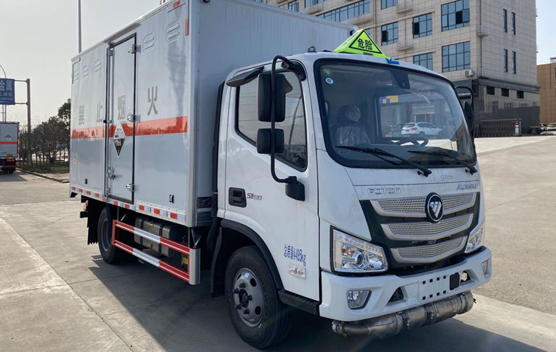 該車為危險品運輸車,運輸具有獨立容器(瓶)包裝的物品,運送危險物品類項號:8。廂體頂部封閉,不可開啟。側后防護材料均為Q235,螺栓連接,后防護截面尺寸(mm)100×50,下邊緣離地高450mm。選裝后部尾板,選裝后部尾板時后防護材料為Q235,螺栓連接,截面尺寸(mm)φ100,下邊緣離地高450mm。廂體選裝側開門及位置或無側門、選裝后門雙拉桿,廂體選裝瓦楞板結構,選裝百葉窗。僅選用排氣管前置、限速裝置(限速80km/h)、前輪盤式制動及子午線輪胎的底盤;轉向輪裝備輪胎爆胎應急防護裝置。安裝帶有衛星定位功能的行駛記錄儀。ABS型號/生產廠家:ABS-E/威伯科汽車控制系統(中國)有限公司,ABS-VI·E/廣州瑞立科密汽車電子股份有限公司,YF8/武漢元豐汽車電控系統有限公司。發動機/油耗值(L/100Km)對應關系為: D25TCIF1/11.16,F2.5NS6B131/11.27。尾板收起狀態水平長度為280mm,尾板質量為350kg。選裝ETC。隨底盤選裝駕駛室,選裝排氣管后處理、電瓶、氣瓶、尿素罐安裝位置。整備質量包括備胎、滅火器、隨車工具、停車楔;貨廂重量為:復合板結構1215kg,瓦楞板結構1050kg;材質/厚度:復合板結構廂體:底板材質為Q235,厚度3mm,側板為外冷扎鋼板+中間阻燃泡沫+內純鋁板,厚度42mm;瓦楞板結構廂體:底板材質為Q235,厚度3mm,側板為冷扎鋼板,厚度1.2mm。選裝制冷機組,選裝儲氣筒樣.隨底盤選裝前臉標識.