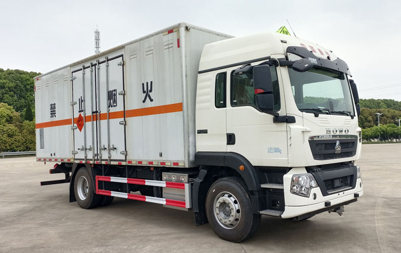 1、該車為危險品運輸車,廂體頂部封閉,不可開啟,危險貨物運輸車輛類型:EX/Ⅲ.該車用于運輸具有獨立容器(瓶)包裝的爆炸品。類項號:1.1B,1.1G,1.3C,1.1D,1.2D,1.1C,1.4G。2、側防護及后防護材料為Q235,側防護螺栓連接,后防護焊接連接,截面尺寸120×50mm,下邊緣離地高370mm.3、僅選用4700mm,5000mm軸距底盤,整車長/軸距/前懸/后懸(mm)對應關系:9100/5000/1430/2670,8950/5000/1430/2520,8600/4700/1430/2470.僅采用前輪盤式制動器,前置排氣管,子午線輪胎,限速裝置的底盤,限速80km/h;轉向輪安裝爆胎應急防護裝置;后軸采用空氣懸架;該車型可選裝ETC車載裝置.發動機/油耗值(L/100km)對應關系為: MC07.25-60/26.5,MC07.27-60/26.5,MC07.29-60/26.5,MC05H.25-60/26.2,MC05H.23-60/26.2,MC05H.20-60/26.2,WP6H245E61/26.4,MC07H.29-60/26.5,WP6H270E61/26.4,WP7H220E62/23.8,WP7H245E62/23.8,WP7H270E62/23.8,WP7H300E62/23.8,WP4.6NQ220E61/26.3。該車安裝具有衛星定位功能的行駛記錄儀;EBS型號:EBS3;EBS系統生產企業: 威伯科(上海)管理有限公司.廂體側面選裝開門型式及位置,選裝不帶側開門,選裝后門合頁,選裝貨廂平面或瓦楞結構;廂體側面板選裝開百葉窗,選裝后部樣式;隨底盤選裝駕駛室,選裝油箱布置。