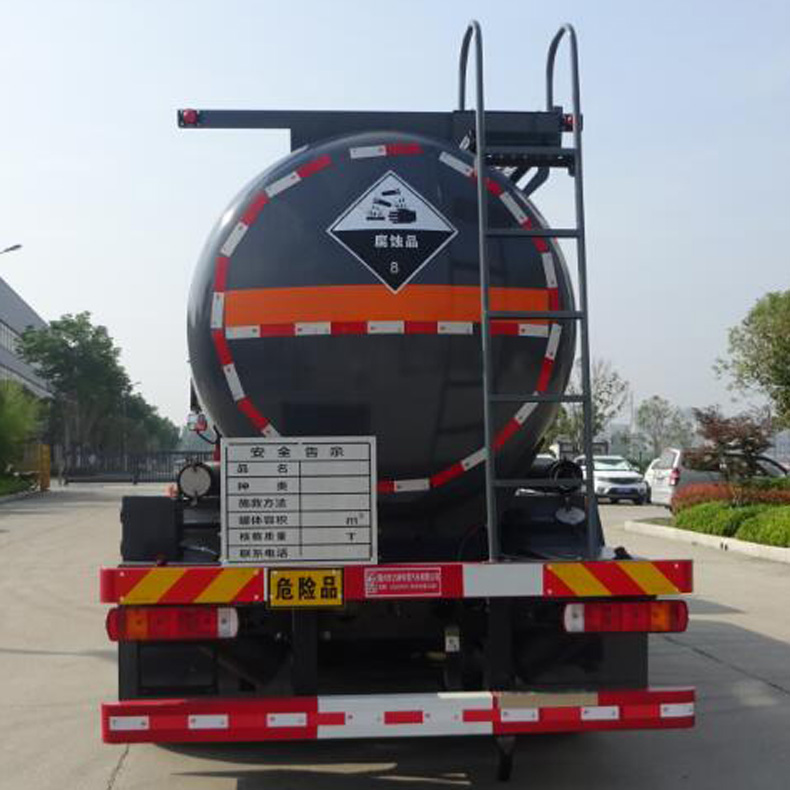 罐體總容量:12.5立方米,罐體有效容積:11.9立方米,罐體尺寸:長6700mm,直徑1610mm;危險貨物車輛類型:AT型車輛;介質zui大密度1340千克/立方米;僅采用1900+4000mm軸距,隨底盤選裝駕駛室,選裝擋泥板樣式,選裝罐體兩側管廂樣式及尾部出口箱樣式;選裝罐頂保護裝置樣式,選裝后爬梯位置;側,后防護裝置材料材質:Q235B,側,后防護均用螺栓連接,后部防護裝置斷面尺寸(寬×高)80×150(mm),后部防護離地高度:460mm.安裝具有衛星定位功能的行駛記錄儀,前軸安裝盤式制動器,排氣管前置,安裝限速裝置,限速80km/h.僅采用底盤子午線輪胎;安裝EBS.EBS生產廠家/型號:克諾爾制動系統(大連)有限公司/EBS 5;發動機/油耗值(L/100km)對應關系為:CA6DLD-22E6 (37.5);該車后軸為采用空氣懸架,轉向輪安裝bao胎應急防護裝置,選裝直接供電式ETC車載裝置;
