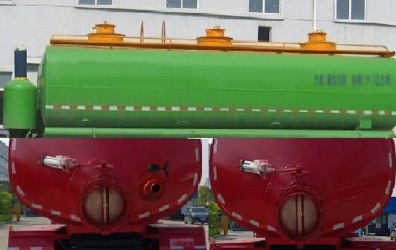 罐體總容積:19.5立方米,有效容積18.7立方米.罐體外形尺寸(長×寬×高)(mm):6300(不含尾錐)×2350×1600;運輸品名:液態(tài)污泥,密度:800千克/立方米,隨底盤選裝駕駛室及后處理器位置,選裝罐體不帶加強筋,選裝不同的進料口及出料口樣式;軸距/前懸/后懸對應關系分別為(mm):1950+3525+1350/1500/1775;1800+3525+1350/1430/1995;側、后防護裝置材料材質(zhì):Q235B,側、后防護均采用螺栓連接,后防護裝置斷面尺寸為(mm):80×150,后部防護離地高度:500mm;安裝具有衛(wèi)星定位功能的行駛記錄儀;ABS系統(tǒng)控制器生產(chǎn)企業(yè)/型號為威伯科(上海)管理有限公司/4460046300;僅適用發(fā)動機/油耗值(L/100km)對應關系為:WP8.350E61(37.3),WP9H350E62(35.7),WP10H400E62(37.1);該車型可選裝直接供電式ETC車載裝置.
